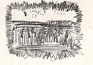 They told the rest of the class what they had seen. Then, on the way back, they saw some footprints. There were two pairs of footprints; one seemed to be from a small pair of flat shoes, like tennis shoes, and the other looked like it was made from a pair of big long-toed boots, like cowboy boots; and the footprints were leading straight to the pond!