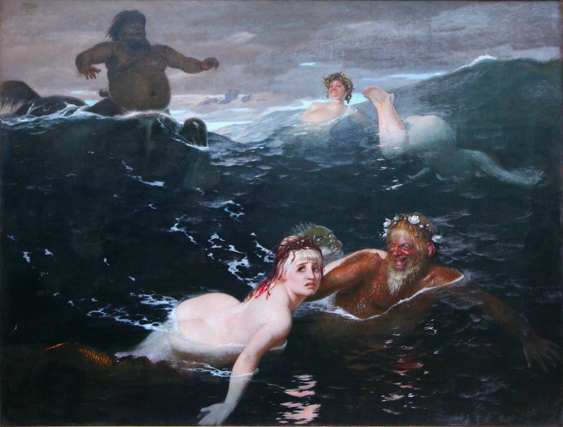 Bocklin had been swimming in Italy with a friend who dove into the waves, swam some distance underwater, and suddenly resurfaced,