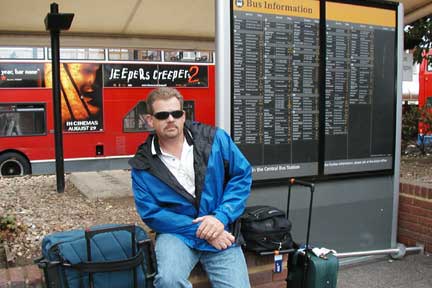 John waiting in the Heathrow Central Coach Station. Anne and John travelled from San Francisco on August 28 and arrived in London, Heathrow around midday on Friday August 29. We travelled by National Express Coach down to Salisbury and stayed at the White Hart Hotel. The hotel's Mulligatawny soup and fresh, crisp roll & butter were a wonderful treat and absolutely delicious! |